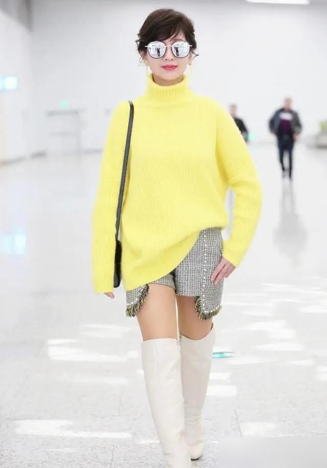 但其实这只是自己对自己自信心不够,并不是真的这类搭配就不能这样穿; 但是像赵雅芝一样对于自身气质和自信把握准确的人来说就不会有这个问题,同时也不会觉得自己的腿粗而影响气色。
