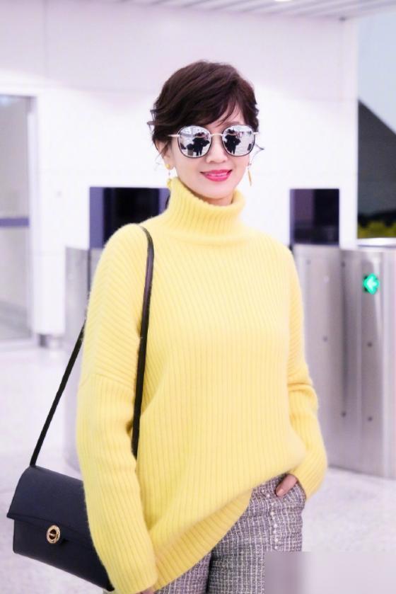 其实像赵雅芝这样的穿搭就不会显得有任何老气感,同时也将毛衣的穿法展示出来。