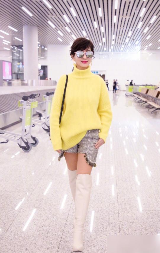在搭配风格中,上半身是毛衣,而下半身则是选择了一条短裤,这就展现出了赵雅芝青春靓丽的一面。